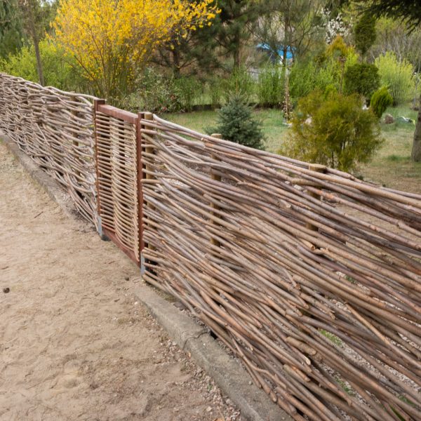 Budujemy dwa rodzaje płotów z suchych kijów wierzbowych: płoty poziome i płoty modułowe plecione pionowo. Płot o wyplocie poziomym wykonywany jest zwykle jako jednolita ściana na całym odcinku. Najwyższa możliwa wysokość płotu poziomego to 2 metry.