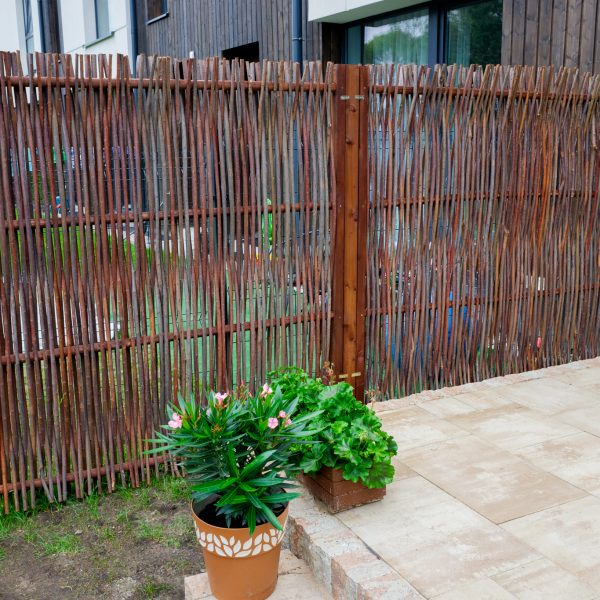 Płoty suche w obu rodzajach to także elegancki i niespotykany sposób ogrodzenia posesji. W przypadku płotu pionowego kije wierzbowe utrzymywane są przez drewnianą ramę sprawiając, że zapewniona jest stabilność wyplotu.