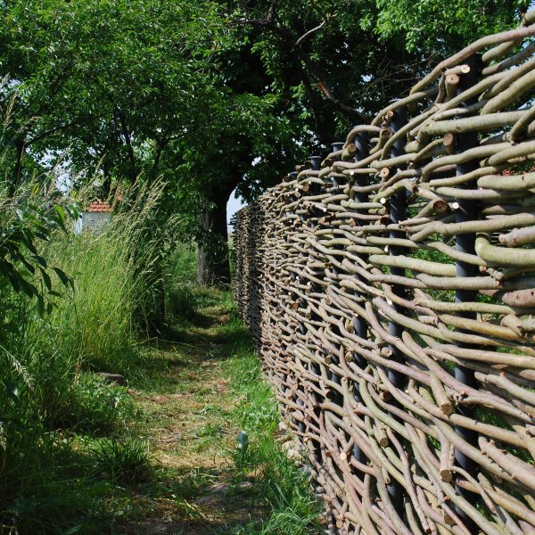 Płoty wykonane z suchych kijów wierzbowych mają w Polsce długą historię. Nasz sposób wykonania poziomo plecionego suchego płotu z wierzby przypomina te zapominane, a spotykane do niedawna choćby w dolinie Wisły i w skansenach – na terenach osadniczych przybyszów z zachodniej Europy, szczególnie osadników olenderskich.