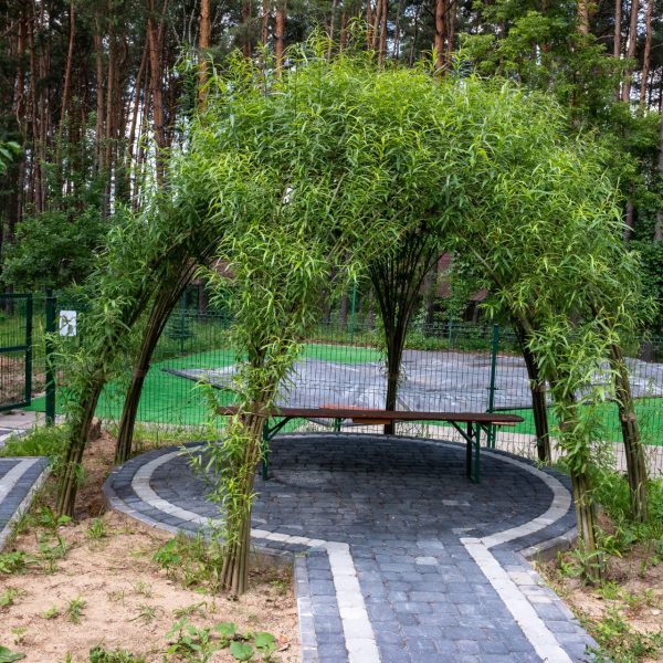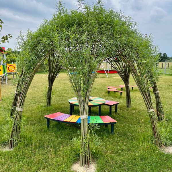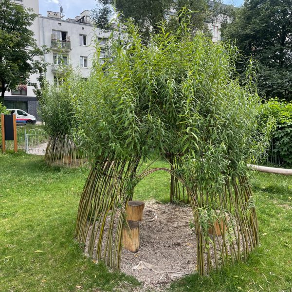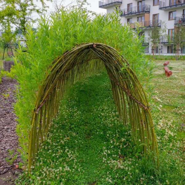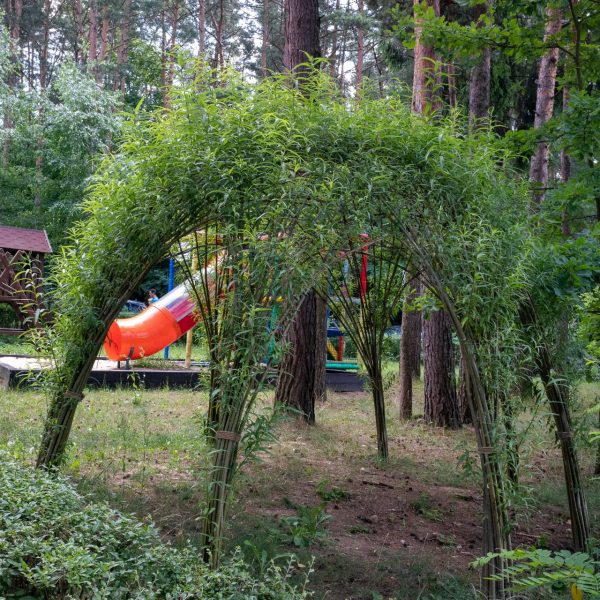 Żywe budowle wykonane z wierzby wiciowej to m.in. altany, szałasy, tunele, labirynty. Wykorzystanie żywej wierzby zazielenia przestrzeń, uzupełnia tradycyjne urządzenia dotychczas stosowane na placach zabaw.